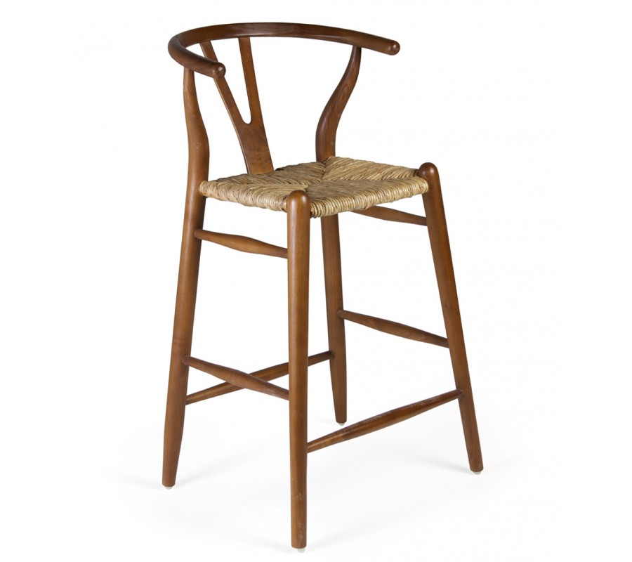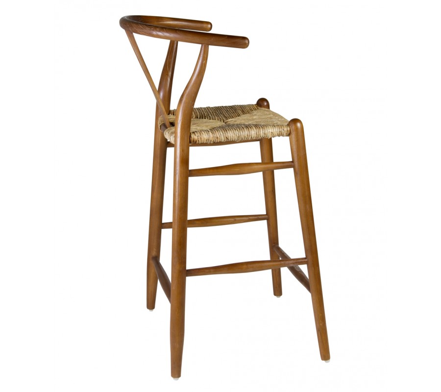 Štýlová ratanová barová stolička Gaffelboen z masívneho dreva s oblúkovým operadlom v hedej farbe 97 cm