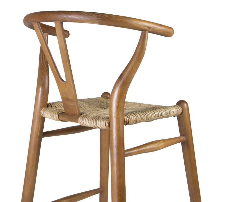 Barová stolička je navrhnutá v etno štýle, ručne vyrobená z kvalitného ratanového výpletu a pevného masívneho teakového dreva v hnedej farbe.