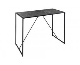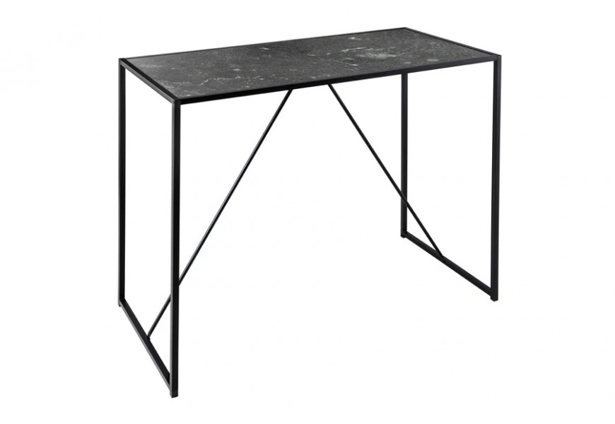 Moderný industriálny čierny barový stôl Industria Marble s kovovu podstavou a vrchnou doskou s mramorovým dizajnom 105 cm
