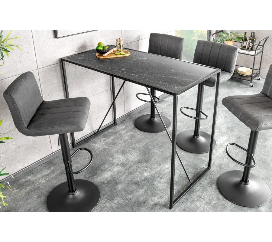 Barový stôl Industria Marble sa hodí do moderne zariadenej kuchyne či menších jedálenských priestorov. Čiernu farbu môžete skombinovať so stoličkami v neutrálnych odtieňoch, čím vytvoríte elegantný a nadčasový vizuál, ale aj s výraznejšími farebnými doplnkami, ktoré prinesú do priestoru štýlový akcent.