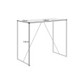 Vrchná doska je umiestnená v čiernom kovovm ráme a na rohoch sú k nej pripojené štíhle hranaté nožičky. Na kratších stranách ich v spodnej časti prepája lineárna spojnica, V spodnej časti sa tiež nachádza prvok v tvare obráteného V, ktorý dodáva nábytku zaujímavý dizajnový prvok a zároveň zaručuje jeho výbornú stabilitu.