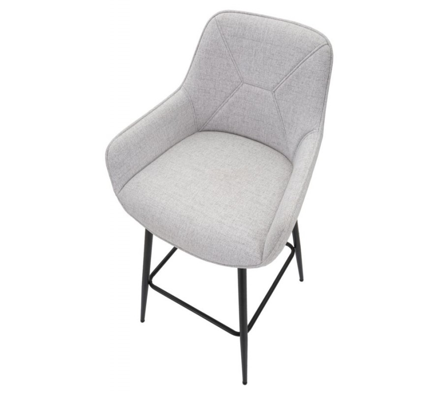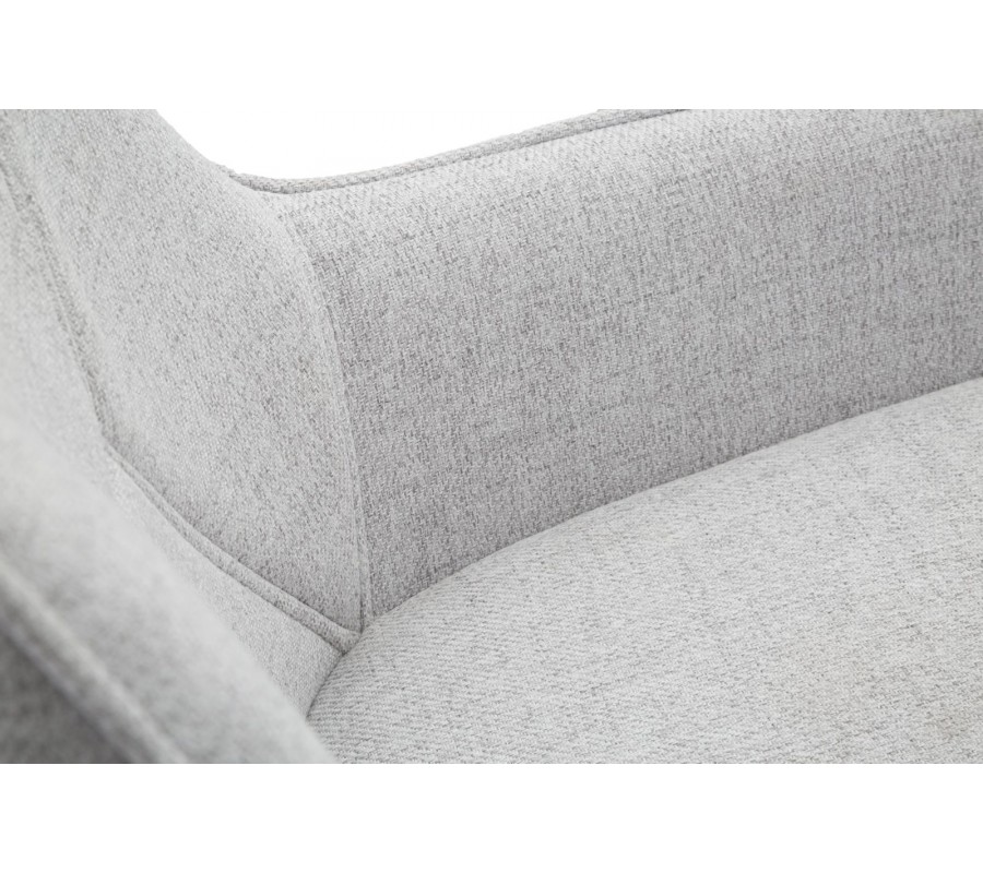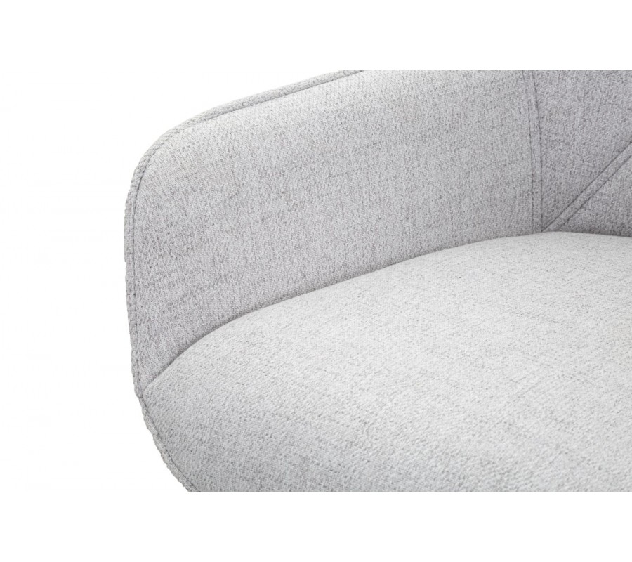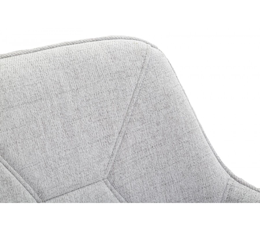 Sedacia časť a operadlo sú potiahnuté textilným poťahom v svetlosivej farbe, ktorý je príjemný na dotyk a odolný voči opotrebovaniu. Vnútorné penové čalúnenie zaručuje komfort pri sedení. Geometrické prešívanie na operadle podčiarkuje jej moderný charakter.