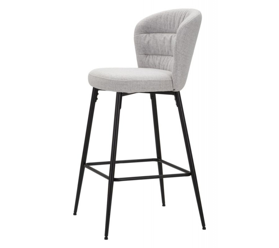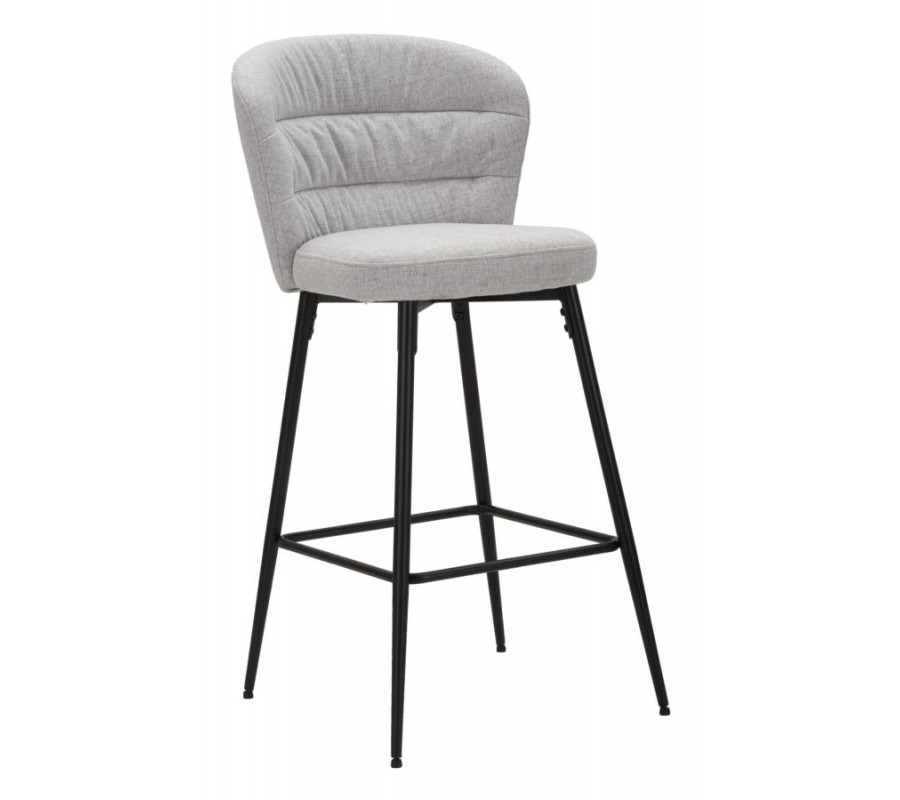 Moderná barová stolička Magnus so svetlosivým čalúnením z látky s ergonomickým operadlom na čiernych kovových nohách 108 cm