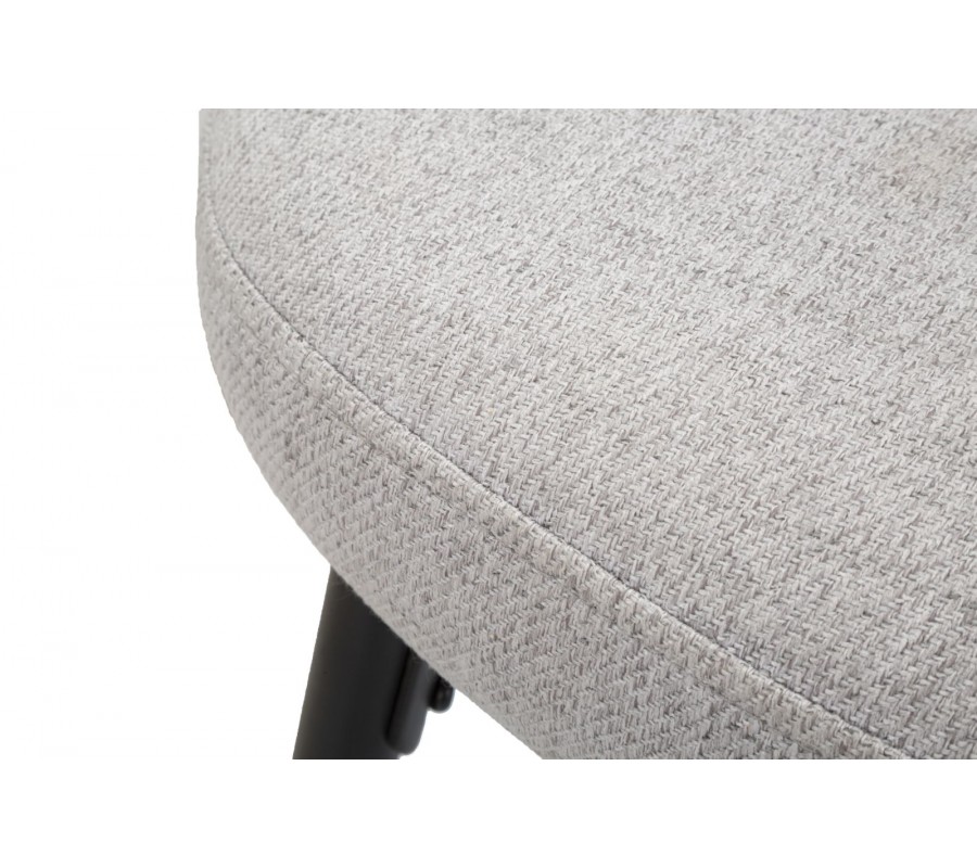 Sedacia časť s mäkkým penovým čalúnením je pokrytá kvalitnou textíliou, ktorá je príjemná na dotyk a odolná voči oderu. Vďaka jej svetlosivému odtieňu pôsobí stolička elegantne a ľahko zapadne do rôznych interiérových štýlov.