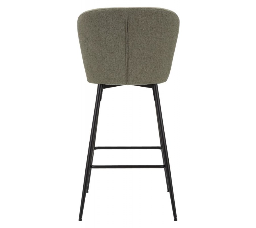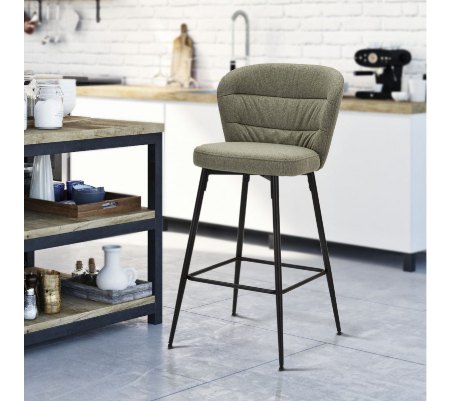 Moderná barová stolička Magnus so zakriveným operadlom a textilným poťahom v olivovo zelenej farbe na čiernych nožičkách 108 cm