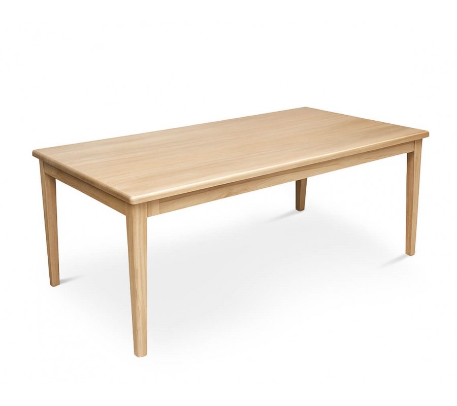 Stôl je vyrobený z dreva mindi, ktoré je v nábytkárstve obľúbené kvôli svojej vysokej pevnosti a odolnosti. Povrch je upravený na príjemnú svetlú hnedú farbu, pripomínajúcu severský dub. Naturálny vizuál zdôrazňuje aj viditeľná jemná kresba letokruhov.