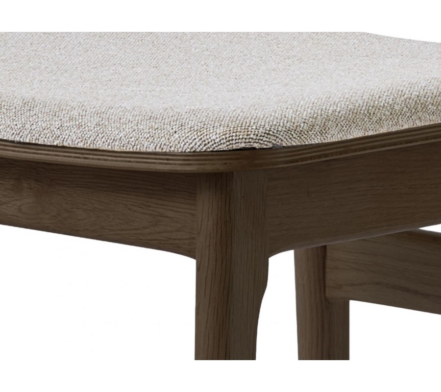Konštrukcia stoličky je vyrobená z masívneho dubového dreva s povrchovou úpravou v tmavom čokoládovo hnedom tóne. Tá zvýrazňuje prirodzenú kresbu dreva a podčiarkuje jeho prírodný charakter.