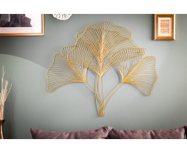 Moderný set florálnych okrúhlych nástenných kovových dekorácií Biloba II zlatej farby 40cm