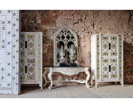Luxusný orientálny príručný stolík Alcasar okrúhly s ručným kovaním starozlatý 50cm