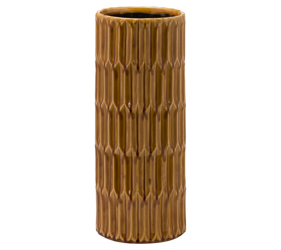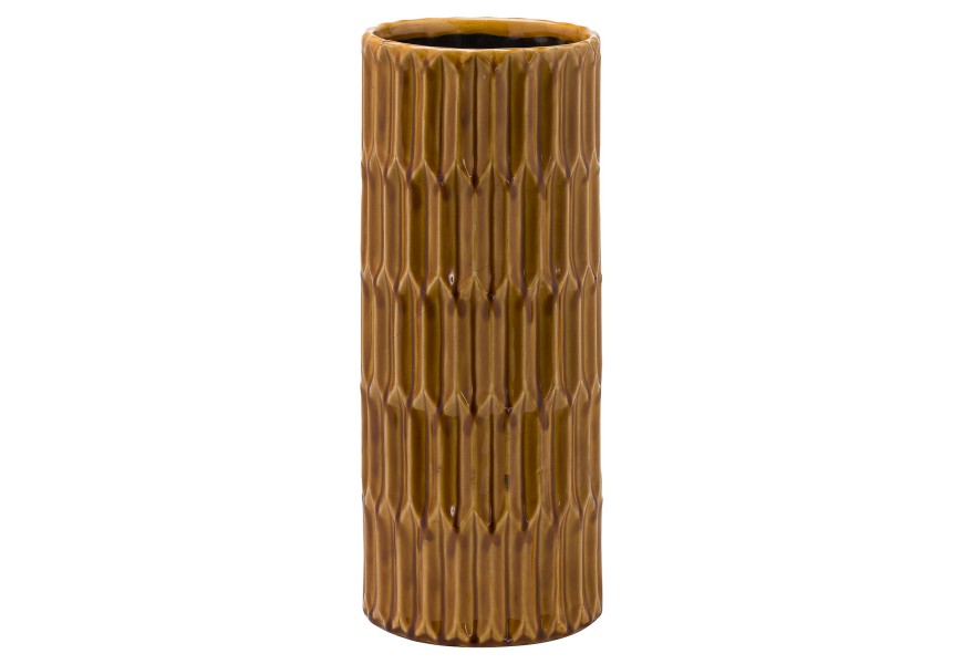 Retro vkusný žltý keramický stojan na dáždniky Orazo II s reliéfnym vzorom 46cm