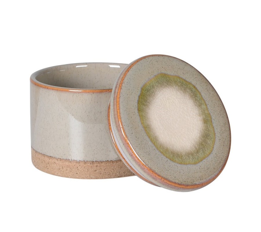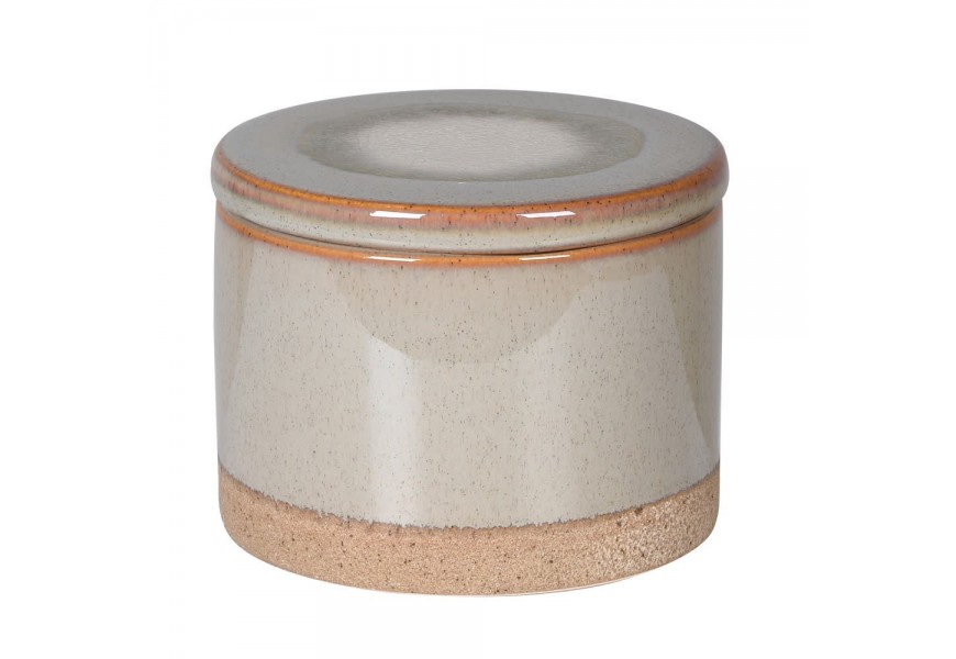 Dizajnová hermeticky uzatvárateľná keramická nádoba Nancy s glazúrou sivej farby a vkusným vekom s povrchovou úpravou pripomínajúcou prierez polodrahokamom. Nádobu odporúčame zladiť najmä do domácností ladených v provensálskom, retro či vidieckom štýle.