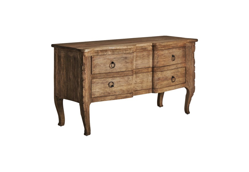 Luxusný rustikálny príborník Munguia so zásuvkami, zaoblenými vyrezávanými nožičkami z mangového masívu v hnedej farbe 155cm