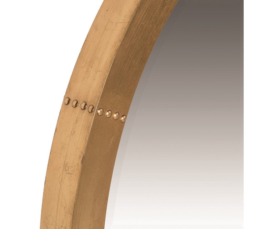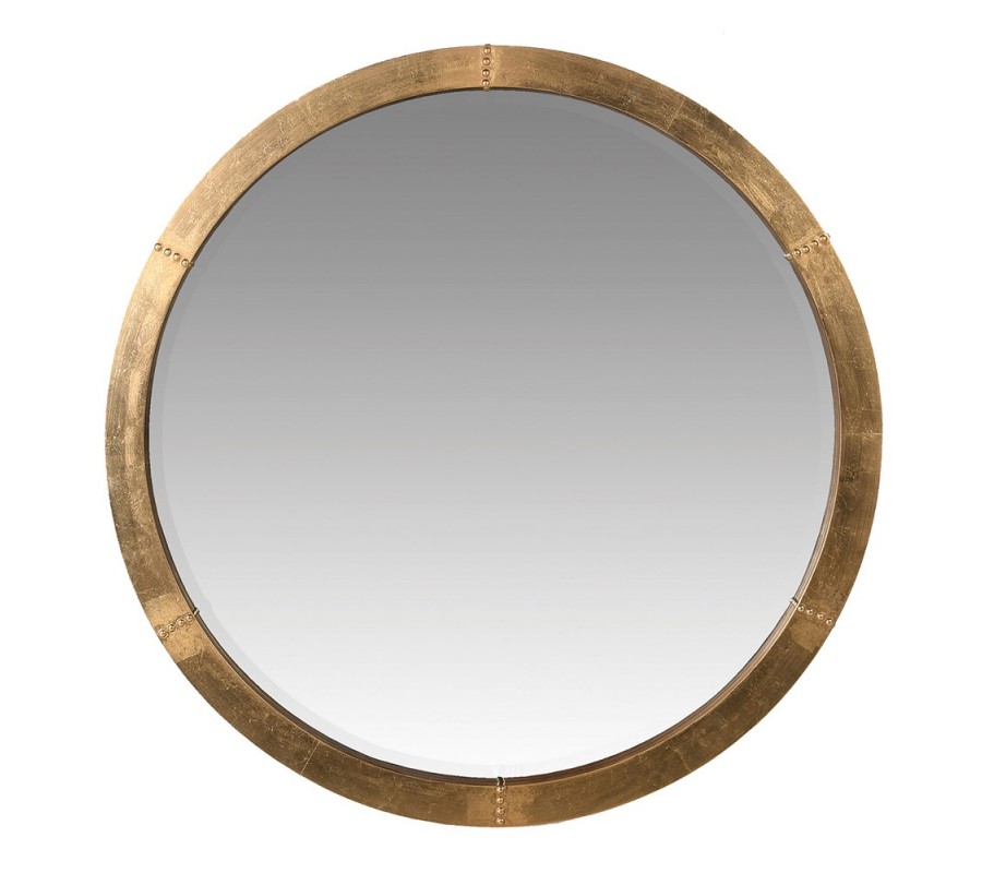Industriálne nástenné zrkadlo Barrata okrúhleho tvaru s kovovým rámom v zlatej farbe 92cm