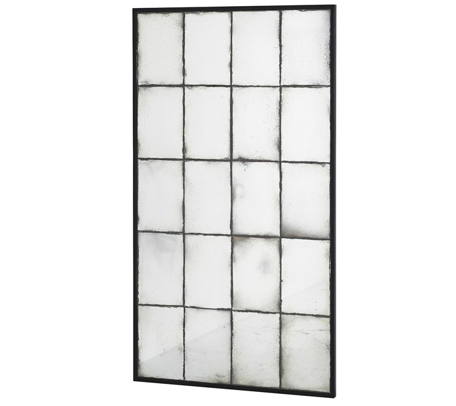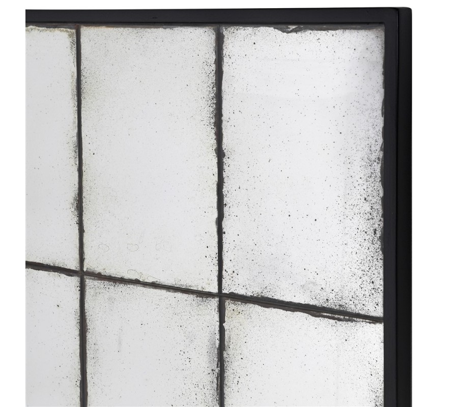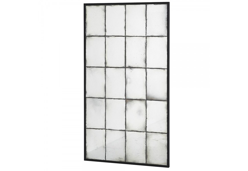 Vintage nástenné zrkadlo Gara obdĺžnikového tvaru s čiernym rámom z kovu a patinou 153cm