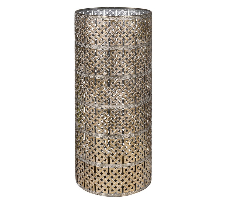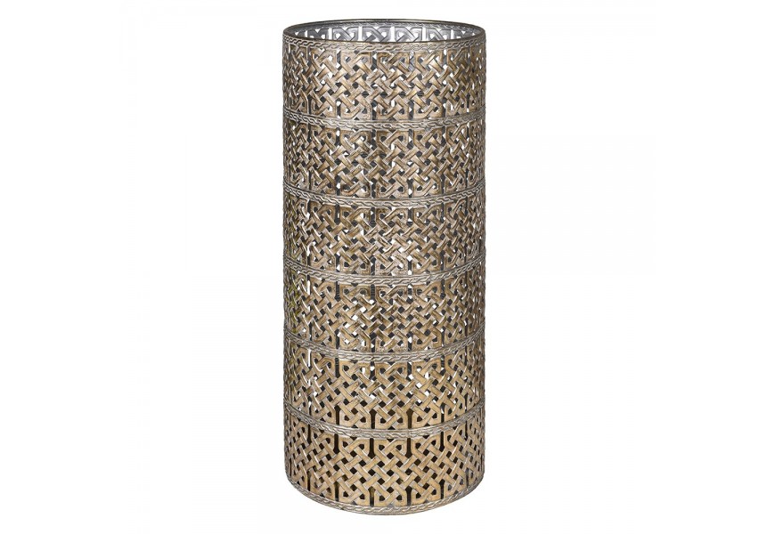 Dizajnový vintage mriežkovaný stojan na dáždniky Leticia z kovu v starožitnej zlatej farbe 55 cm