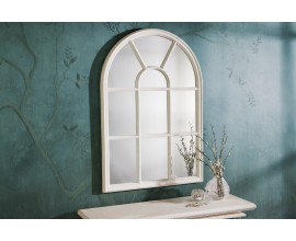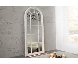 Dizajnové vidiecke biele nástenné zrkadlo Castillo s oblúkovým rámom s vintage efektom zošúchanej farby 140 cm