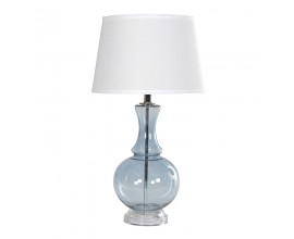 Štýlová sivá sklenená stolná lampa Matilda s bielym valcovým ľanovým tienidlom 69 cm