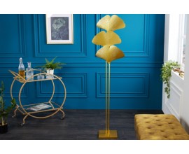 Dizajnová glamour stojaca lampa Ginko zlatej farby z kovu s ozdobnými listami ginka 160cm