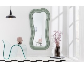 Asymetrické dizajnové art deco zrkadlo Swan s polyuretánovým rámom v pastelovej zelenej farbe s kaskádovým efektom 100cm