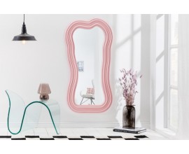 Asymetrické art deco dizajnové zrkadlo Swan s polyuretánovým rámom v pastelovej ružovej farbe s kaskádovým efektom 100cm