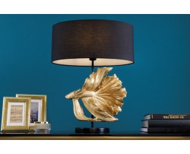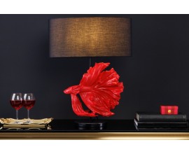 Dizajnová stolná lampa Sidoria s červenou podstavou v tvare ryby s čiernym okrúhlym tienidlom 64cm