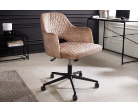 Moderná dizajnová kancelárska stolička Pedro otočná na kolieskach so zamatovým čalúnením s prešívaním svetlá béžová 82 cm