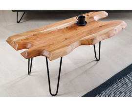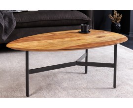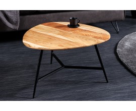 Dizajnový masívny trojuholníkový konferenčný stolík Dalbergio s doskou z akáciového dreva svetlá hnedá 70 cm
