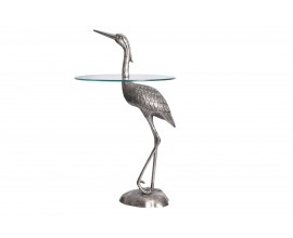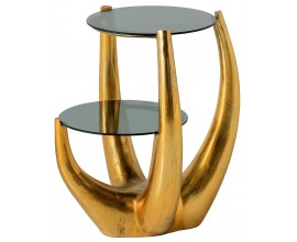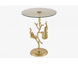 Štýlový art deco kovový príručný stolík Tierra Glam s okrúhlou sklenenou doskou a nohou v podobe zlatých pávov 60 cm