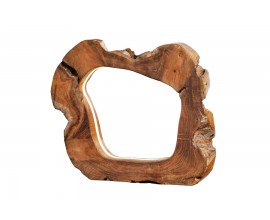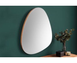Moderné asymetrické nástenné zrkadlo Antonio so zaoblenými hranami a hnedým dubovým rámom po bokoch 72 cm