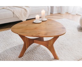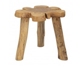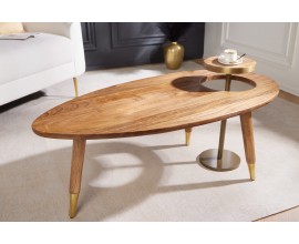 Dizajnový okrúhly príručný stolík Salian z masívneho dreva v svetlej hnedej lakovanej farbe v atypickom tvare 45 cm