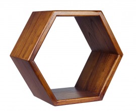 Luxusná hnedá šesťuholníková nástenná polica Norse z masívneho mindi dreva 40 cm