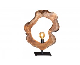 Dizajnová masívna stolná lampa Faustion z teakového dreva v naturálnej hnedej farbe s LED pásom 48 cm