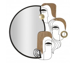 Moderné dizajnové nástenné zrkadlo Donna okrúhleho tvaru s čiernym kovovým rámom a umeleckým dekorom ženských tvárí 80 cm