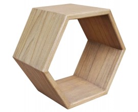 Škandinávska polica Bergen šesťuholníkového geometrického tvaru z hnedého masívneho dreva mindi 40 cm