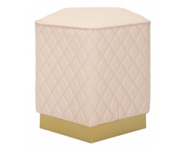 Art deco čalúnená päťuholníková ružová kožená taburetka Glamia Tapisé s kosoštvorcovým vzorom a zlatým detailom 38 cm