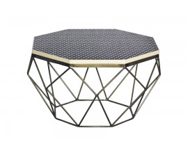 Moderný osemuholníkový bronzový konferenčný stolík Adamantino so šesťuholníkovými bielymi detailmi s kosťovou intarziou 69 cm