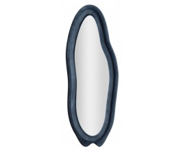 Moderné dizajnové nástenné zrkadlo Wavey s atypickým vlnitým tvarom a modrým semišovo zamatovým poťahom 160 cm