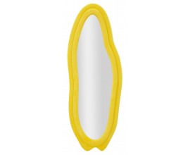 Moderné dizajnové nástenné zrkadlo Wavey s atypickým vlnitým tvarom a žltým semišovým poťahom 160 cm