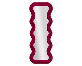 Dizajnové nástenné ružové zrkadlo Swan s vlnitým rámom a klenutým vrchným oblúkom so zamatovým poťahom 160 cm