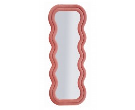Art deco moderné vysoké zrkadlo Swan s vlnitým rámom v pastelovej ružovej farbe 160cm