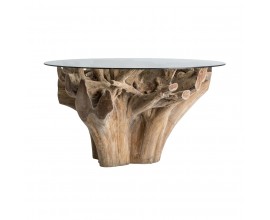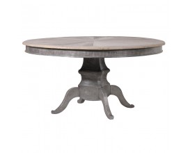 Luxusný industriálny okrúhly jedálenský stôl Barracuda z teakového hnedého dreva s chromovanými nožičkami 120 cm