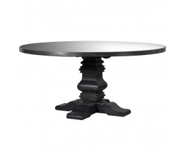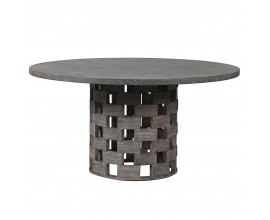 Masívny koloniálny okrúhly jedálenský stôl Davao z dubového dreva s ozdobným ratanovým výpletom v tmavej hnedej farbe 120 cm