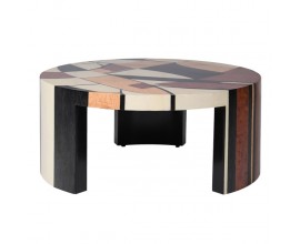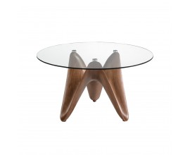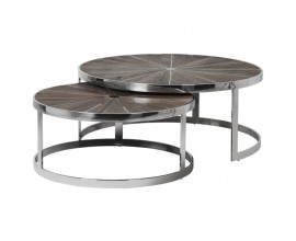 Luxusný moderný okrúhly hnedý konferenčný stolík Vita Naturale z orechového dreva s vrchnou doskou s mramorovým dizajnom 81 cm