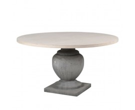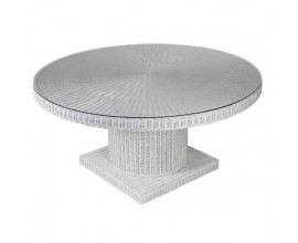 Luxusný okrúhly konferenčný stolík Laticia Blanca s dekoratívnou konštrukciou vo vidieckom štýle bielej farby 100 cm