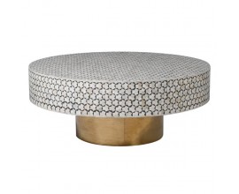 Art deco mosadzný okrúhly konferenčný stolík Horton z kovu s reliéfnym zdobením 80cm