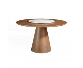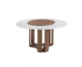Dizajnový okrúhly jedálenský stôl Siam s bielou mramorovou vrchnou doskou s otočným tanierom v strede 150 cm