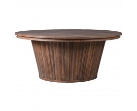 Moderný tmavohnedý okrúhly jedálenský stôl Davidson s jednou nohou s lamelovým zdobením 140 cm