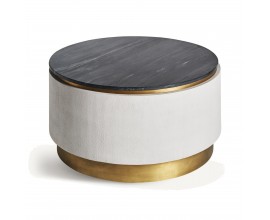 Luxusný art deco okrúhly konferenčný stolík Moneo s bielou mramorovou doskou a zlatou podstavou 80 cm