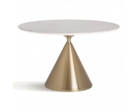 Luxusný art deco okrúhly jedálenský stôl Rebecca s bielou mramorovou doskou a nohou v zlatej farbe 90 cm