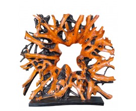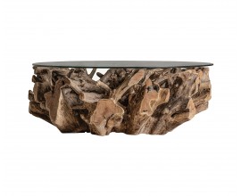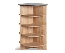 Luxusný vidiecky okrúhly príručný stolík Alesund z masívneho dreva v naturálnej hnedej farbe s geometrickou podstavou 60 cm
